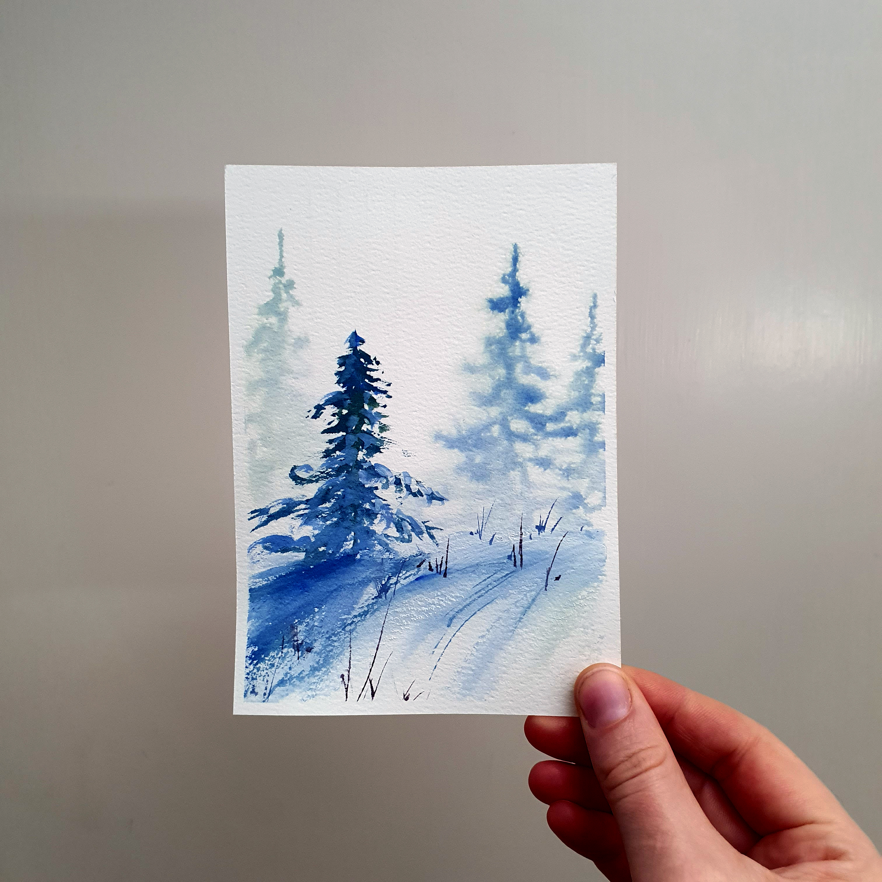 To create a very soft, misty effect, I started with a very watery layer. Gouache thins down nicely, but doesn’t move around quite as much as watercolor, so I it stays in place a little bit more, allowing me to capture the “ghostly” image of a tree in the fog.